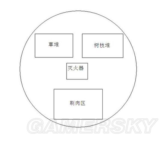 2.这种刷肉方法只用了灭火器作用范围的下半部分,我们可以这么布局