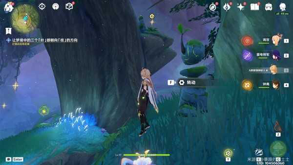 用草元素攻击众叶觉蕊,利用四叶印飞过去。