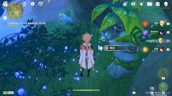 来到大树根前,用雷元素攻击弹跳蘑菇,跳上去就找到了。