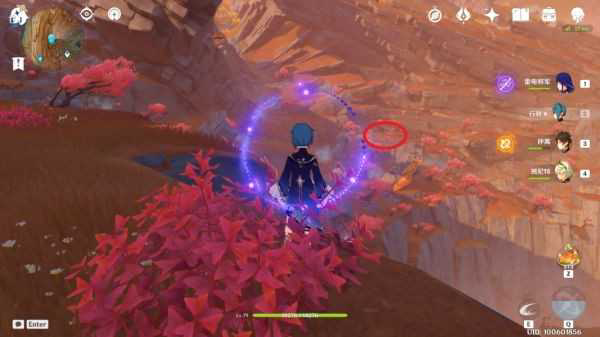 先从传送点到图示位置即可爬山山崖(红圈处为终点)