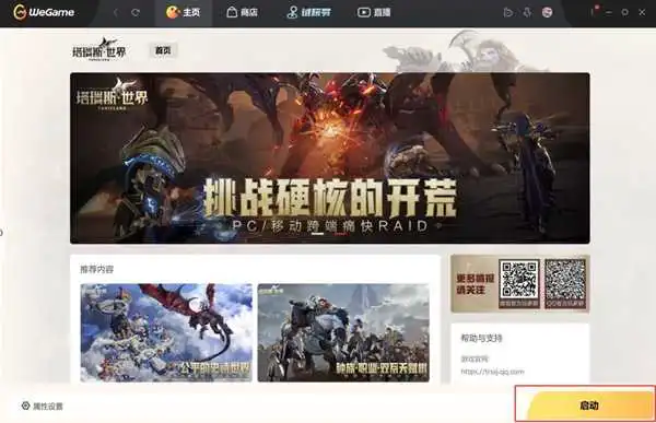 第六步:登录成功后,启动按钮,即可拉起塔瑞斯世界游戏