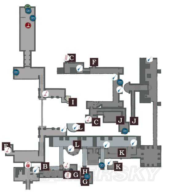 从上到下依次是:篝火、boss、结晶虫、拉杆、锁上的门、主要装备、NPC、魂碎片、宝物。