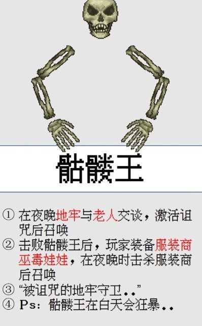 正文 2025年《泰拉瑞亚》骷髅王召唤方法 骷髅王怎么召唤 游戏萌主 /2025-11-20 08:48:41 /3 浏览量 1120 《泰拉瑞亚》有非常多种类的BOSS怪物,其中骷髅王该怎么召唤呢,想要了解召唤方式的玩家请看下面“不过如此太阳”带来的《泰拉瑞亚》骷髅王召唤方法,希望能够提供帮助。 农务各自归,闲暇辄相思。 -- 展开阅读全文 --