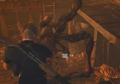 进入屠宰场后先搜刮下层的补给,然后爬梯子进入上层,可以比较好地抵挡他的攻击。村长的普通攻击可以直接用小刀抵挡,横扫时,就根据提示闪避躲掉。
