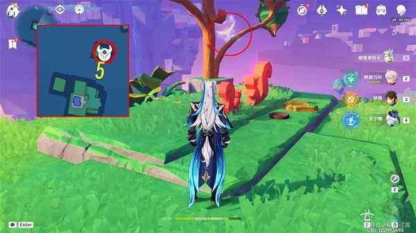 2.下方地图位置处,踩一下下面那个大正方体就能飞起来拿到