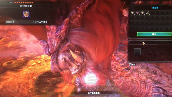 4.历战炎龙王,就一个秒人技能,特意练见切核爆的话大概死5次就能掌握时机了,但是目前我farm还是穿加2点体力的高耳配装,装备如下