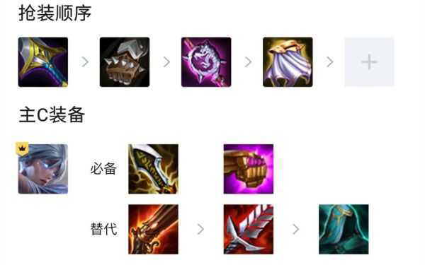 最终阵容为6征服2屠龙2黎明,瑞文装备为无尽,分裂,或者饮血。