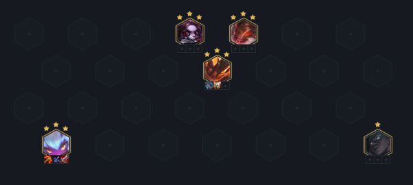 这套阵容的关键就是卡牌的质量,跟传统意义上的赌狗阵容一样,3星越多阵容越强。后期依靠3星质量和全体英雄的高额攻速去跟卢锡安、黑夜亚索等阵容PK。