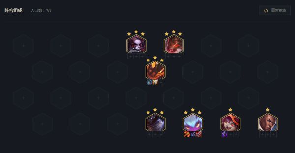 7人口补充关键2炮手羁绊,为小炮补充阵容伤害。基本上前期的质量就足够我们在4阶段开始碾压,因此单纯补充一个卢锡安即可,有没有2星都不重要,我们要直接拉8人口找到8小恶魔。