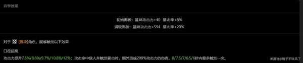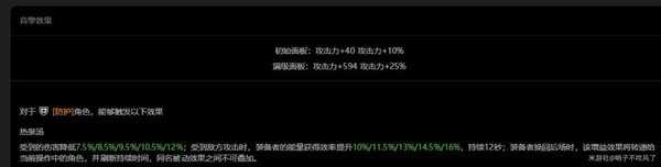 全部给予的攻击力面板属性。特殊机制降低自身受到的伤害,并且提高获得能量效率,同时该效果在切人时可以刷新持续时间进行保留,有很不错的辅助效果,可以考虑。