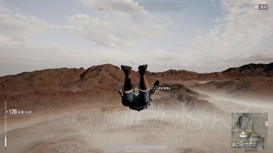 按F键出舱后向着目的地直线飞行,并且要全程按着W向前保持加速飞行状态,当你离距离两个小格以上时,将鼠标上拉,保持126KM/H的速度下落。