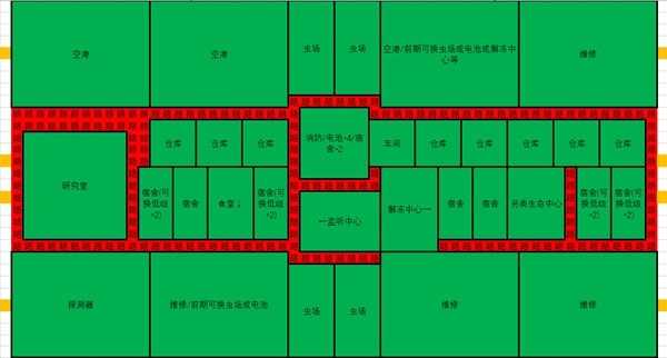 由于这个游戏在不同的阶段对不同的物品产能有不同的需求,且部分建筑在后期解锁科技前无法铺设必须要在前期使用下位替代,故而在考虑布局的时候要兼顾前后期,也要能易于随着需求改变建筑。实际上实现起来并不困难。我给出的参考布局将可以给你的开局打下一个好基础,且此布局在开局的时候部分地方可以简单替换。需要替换的主要建筑也就是以智能宿舍→医院、智能宿舍→小宿舍x2、小仓库x2→虫农场替代。