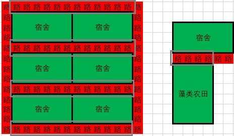 如此更改之后,可以在连通性不变、物流交互距离大体不变的情况下多放下两个宿舍的建筑
