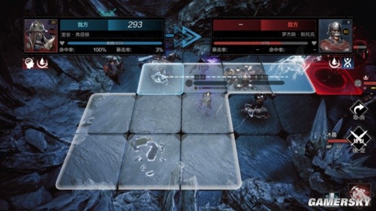 第一回合,鹰眼使用技能和步兵攻击突击兵,其余佣兵原地待命。