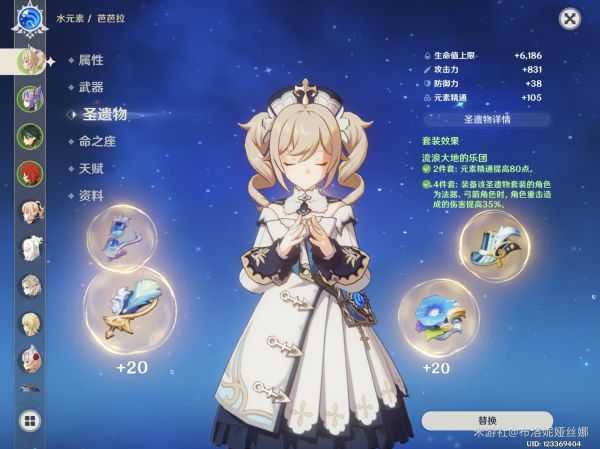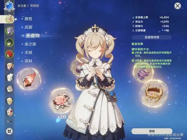 结合以上两点,芭芭拉的推荐圣遗物是水套和乐团套