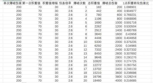 且该表格假设前提是积蓄值刚好无溢出,实际情况不太可能如此,实际战斗相同次数的爆破会需要更多的积蓄值。