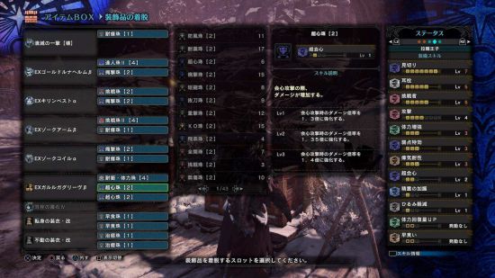 见切7、攻击4、弱点特效3、挑战者3、匠2、超心1、风压耐性5、体力3、火抗3。