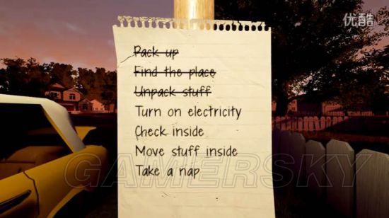 接着有一个小攻略,可用可不用,就是玩家可以一直睡觉,就是你房间里的床,一直睡,触发邻居开门的剧情,和躲猫猫的剧情,这两个剧情没触发之前邻居的作息时间,是很不规律的,触发后邻居是开始有规律的,比如邻居会去停车场,会去餐厅,会看电视,等等,这些都是留给玩家去找线索的时间