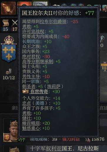 除此之外,继承之后除了赶紧把强力封臣塞进内阁,让掌玺大臣进行国内事务也很重要,游戏到中期因为家族级别提高和各种好感加成,即便是有强宣称的兄弟+强力封臣也不不会负好感了。