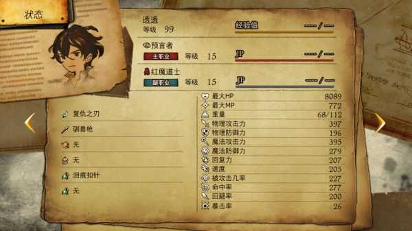 右手武器:赤月剑,需要赤魔的支援技能(魔法暴击,hp/mp交换)。