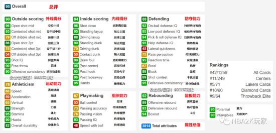 这张大加和他的老弟小加相比而言属性总值高了100点左右,主要高在了策应能力上,传球属性高了很多,此外盖帽能力稍强。但个人感觉从实用性上来说,由于小加比大加高了35点横移、6点力量以及共21点的三分能力,所以可能小加要更加实用一些。印象中有很多玩家朋友反映小加挡拆外弹后一般会在中距离接球,从这一点上来说这张大加可能会稍好一些,自己打了两场,叫挡拆外弹之后大加还是会在三分线外站一站的。