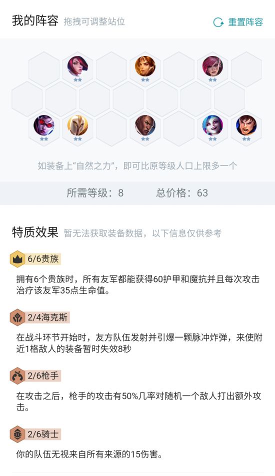 这套就是贵族金克斯,基本站位如图,剑姬顶在对面控制前,挨打就能控对方控制,对方控制慢一秒可能团战就不一样。这套二星天使了基本无敌,一星天使可能还不大稳,经济好就上九再上个虫子,或者上九找大哥。