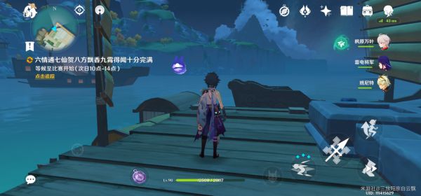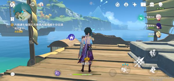 第三站找到码头一处僻静的地方,试一下喊魈的名字,看看他能不能出来,想让口味清淡的魈帮忙给出建议,顺道吃了一波魈荧的糖。