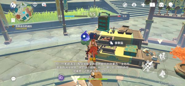 点完火之后就开始挑选合适的调料,需要什么调料可以在香菱的话里面找到线索。