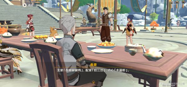 中途拿完调料之后会让旅行者们制作食物,如果背包里面有的话会自动跳过的,一共三样食物,分别是香嫩椒椒鸡,扣三丝,水晶虾。