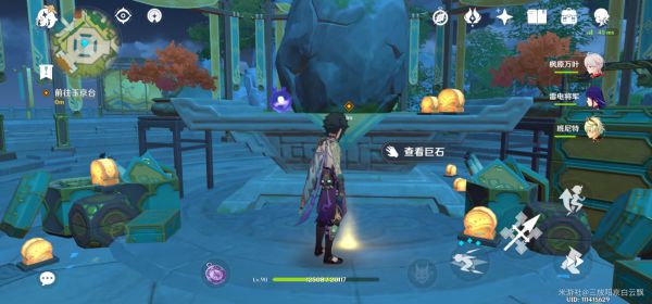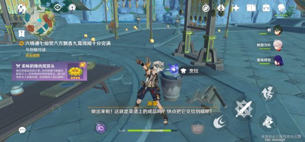 第六站回到玉京台调查巨石,随后进入剧情,举行了如此热火朝天的比赛,巨石居然一点反应都没有,但是香菱找回了刻晴家传的食谱,送给旅行者一份,想要一起做这份辣肉窝窝头。