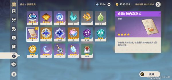点开背包就可以使用食谱进而解锁辣肉窝窝头。