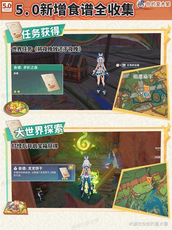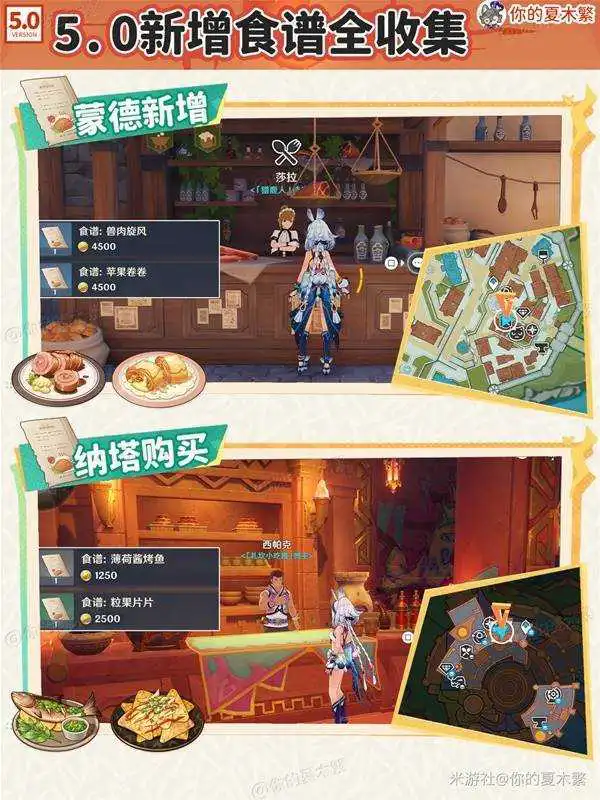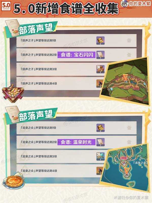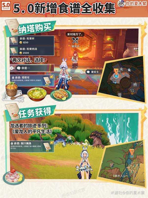 《原神》5.0版本新增的食谱应该怎么获得呢?许多小伙伴和我有着同样的问题,下面是由“你的夏木繁”为大家带来的《原神》5.0新增食谱获取方法,希望可以帮助到大家。