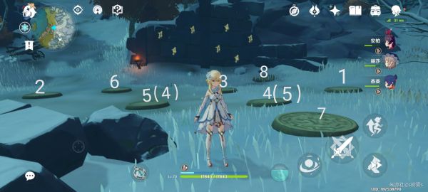 首先遇到的是两个深渊法师,一冰一水。击败后,先解锁8号压力板,然后按图中顺序依次点亮压力板。