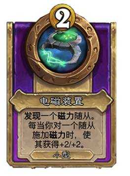 发现一个磁力随从。每当你对随从施加磁力时,使其获得+2/+2。