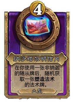 在你使用一张非纳迦的随从牌后,随机获取一张塑造法术的法术牌。