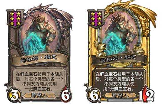 3/6。在鲜血宝石被用于本随从后,对每个类型的各一个不同友方随从使用一张鲜血宝石。