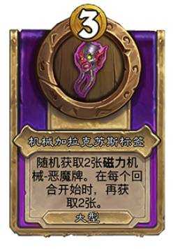 随机获取2张磁力机械-恶魔牌。在每个回合开始时,再获取2张。