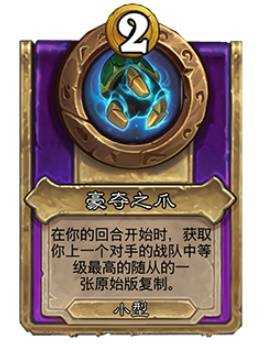 在你的回合开始时,获取你上一个对手的战队中等级最高的随从的一张原始版复制。