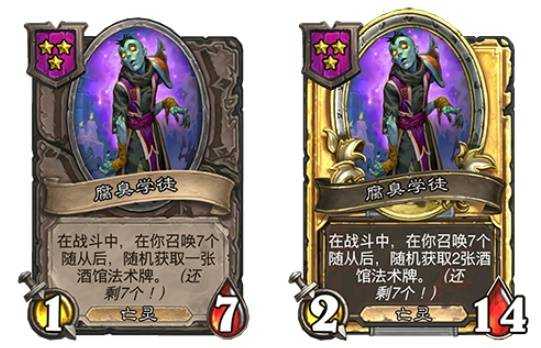 1/7。在战斗中,在你召唤7个随从后,随机获取一张酒馆法术牌。