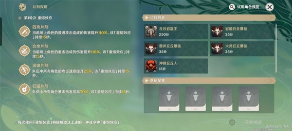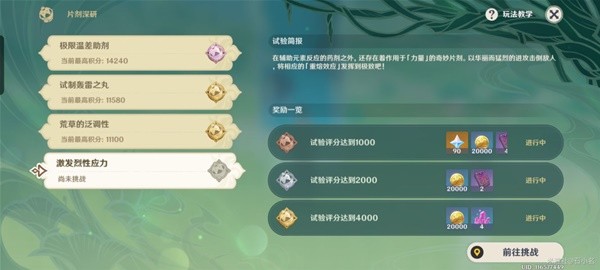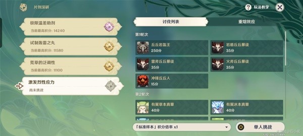 2.[片剂深研]活动挑战中,元素共鸣将不会生效,也无法使用食物等道具。