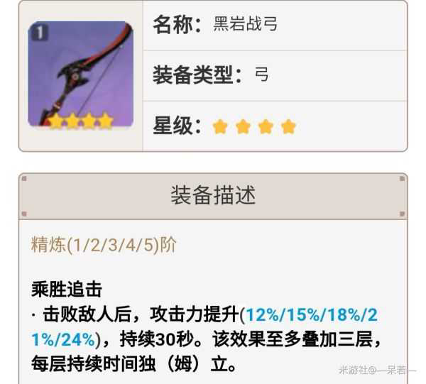 双攻击面板,攻击面板怪物,人称痛苦之弓,由于输出条件比较苛刻(拉扯战里要熟练掌握距离才能打出高爆发),风评不是很高,属于中下五星武器,但对瞄准流安柏绝对是最佳武器。由于高面板,即使不打元素反应的要害攻击也能造成超高的伤害,上限非常高,练满以后对安柏绝对是质变。