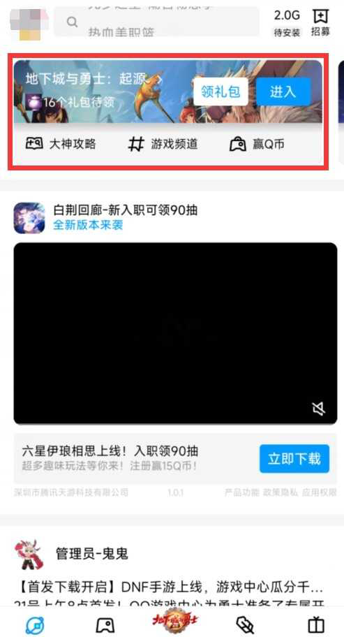 进入游戏中心后搜索地下城与勇士:起源然后。
