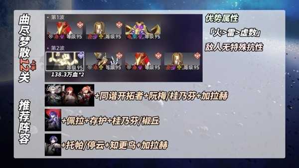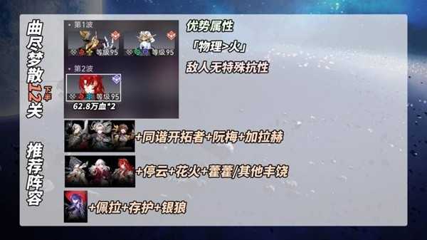 真是陌生又熟悉的一期啊!此次「曲尽梦散」的底关敌人阵容与上一期一致,仅仅是上下半对调!对于原本即可满星的玩家来说,基本可以翻找历史记录,直接复刻相似操作。