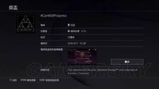 《杀出重围人类分裂》不管是剧情还是游戏体验都是一款口碑极佳的游戏,相信一些小伙伴们也开始打白金了,那么下面小编就为大家带来《杀出重围人类分裂》难点奖杯注意事项及白金心得,快来一起看看吧。