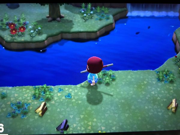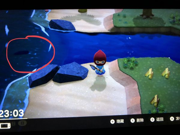 首先得出去到资源岛,这个岛地形非常nice就一条河,河里有三条鱼,.不停的踩鱼让它消失就行了,.鲟鱼每次都在下图这个位置刷新,体形很大游的比较慢,注意了!鲟鱼咬钩后马上就跑,钓的时候得集中注意力。