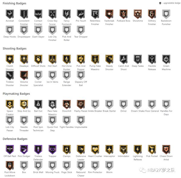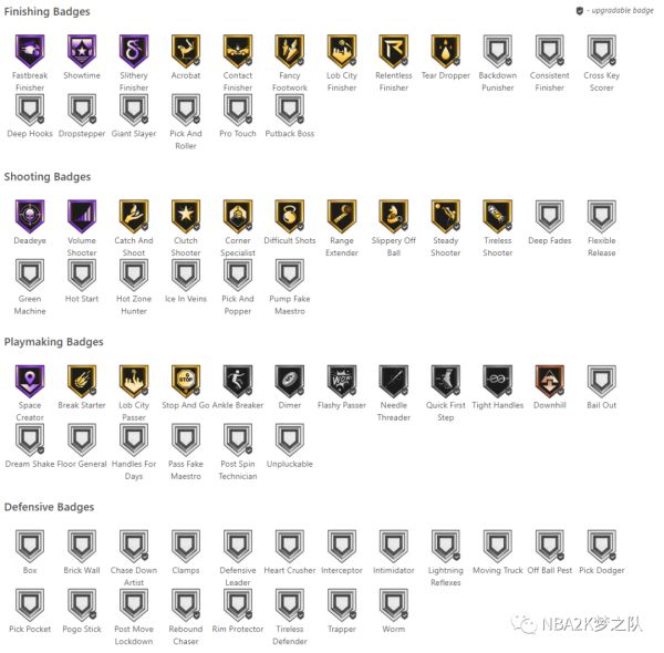 徽章方面,小卡的4枚紫章全是防守型,还有死亡缠绕、防守核心、诛心者、抢断专家等实用金章,防守绝对是T1级别。同时他的投篮章和终结章也很丰富,但就是不能打第一步大师和炮台。