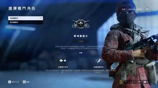 所以首位我会给医护兵,再看看游戏中设定,我将我在游戏中截图给大家看就知道我为何将医护兵排首位。