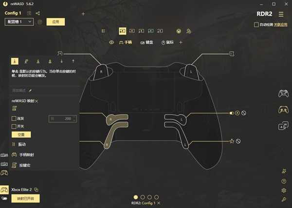 首先,我玩大镖客的时候,一开始用的是xbox one S手柄,感觉很多键位设置很别扭,所以才买了XBOX精英二代手柄,然后看了教程,自己才根据操作习惯,配置了一套映射,下面分享给大家,希望大家多多指正。