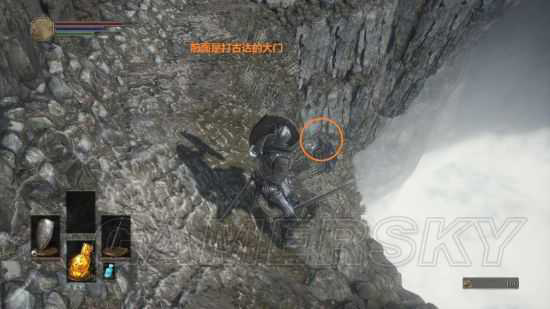 注意:注意绿条,绿条空了就不能进行跳跃,攻击,举盾格挡。火药壶从图中位置获得。