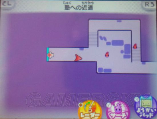 本作地区分两种一种是平时的普通区域,另一种则是战斗区域。如果是战斗区域那下屏幕会改变(如下图所示),妖怪会直接在地图上显示,其他方面基本没变化。